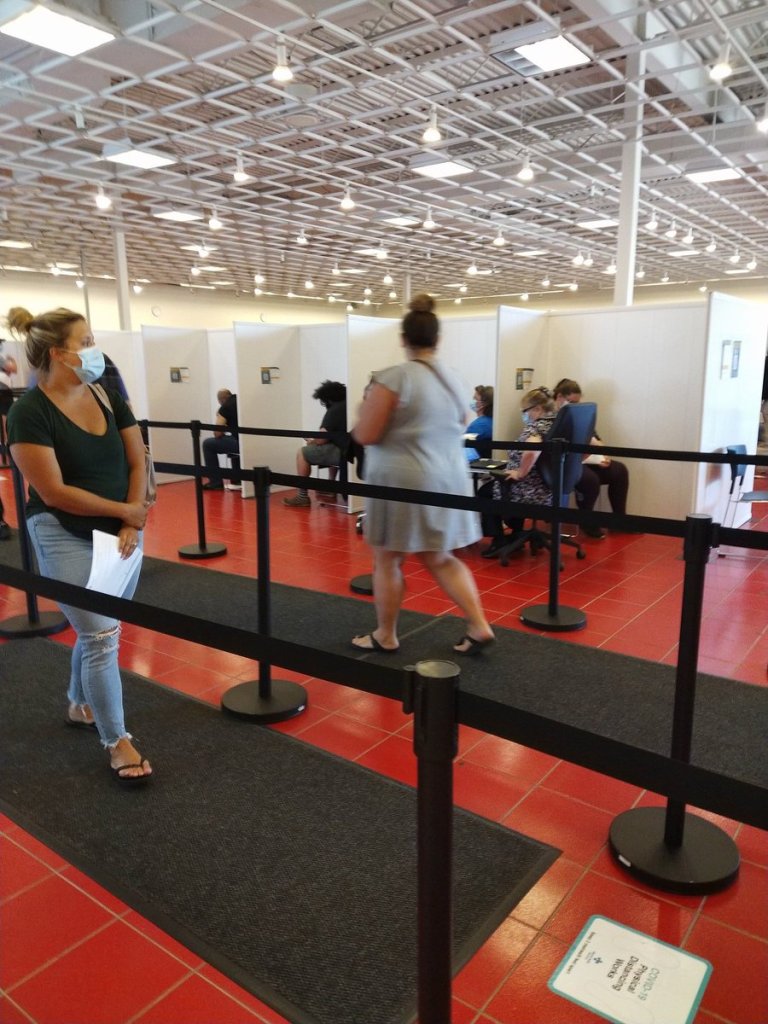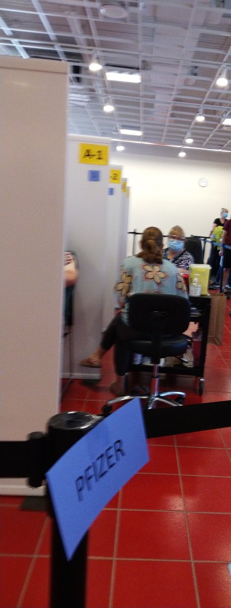 I’m at the @GoAHealth immunization clinic at 12:35, for a 13:10 appointment. Parking lot full. Queue around the building. I join the queue, take the fresh medical mask & wait. “We are serving 12:40 appointments” says the announcer. I wait. At 13:10, she invites 12:50 people.
